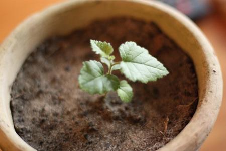 Op dit moment is het plantje verder gegroeid en hebben de bladeren een