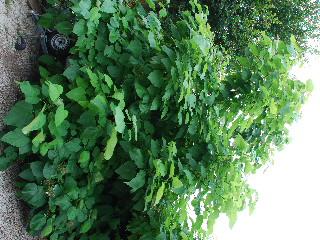 staat eigenlijk op de oprit ,mag gerust tot op de grond (grind) blijven groeien ,vandaag nog een scheut ontdekt van een meter hoog, zal deze in het najaar verplanten aan de andere zijde