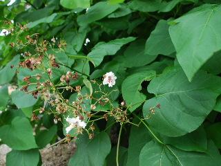De bladeren zijn tot 40 cm lang,de bloemen groeien in trosjes en zijn wit met een rozige binnenkant