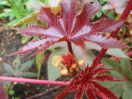 Ricinus Communis - Castorolie of wonderolie plant. Een van de weinige planten die echt giftig is. De plant is hier niet winterhard, zaden winnen of binnen laten overwinteren. Overwinterd bij mij op de kinderkamer. Uit de zaden wordt de Castorolie gewonnen.