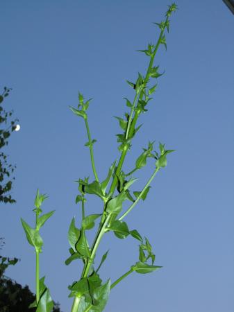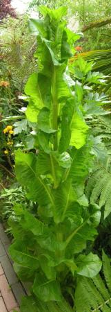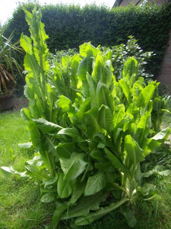 De afgebeelde forse tweejarige plant met het uiterlijk van een groentegewas (sla) gaat waarschijnlijk dit seizoen bloeien. Herkent iemand deze plant die beschikt over een korte witte penwortel? Het is waarschijnlijk geen voedselplant, want de slakken blijven ervan af. Ik popel om de resterende exemplaren te verwijderen, maar de nieuwsgierigheid overheerst nog.