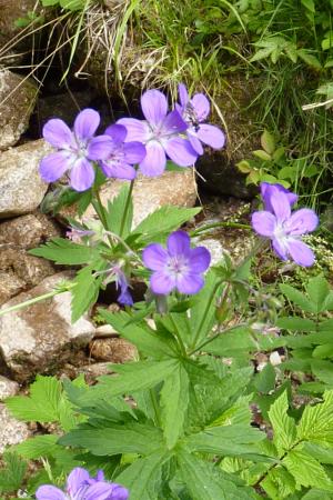 Mijn eerste gedachte is een Geraniuminfo-icon sylvaticum, gezien de vorm van het blad en de hoogte, maar er zijn zoveel hybrides dat het moeilijk te zeggen is.