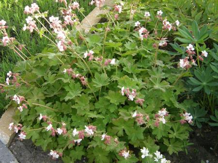 Nee hoor, Spessart bloeit net wit, of was het nu paars, of roze? Google maar eens en kijk met open mond wat er allemaal wordt verkocht onder de naam Spessart of Ingwersen's Variety ... Ik heb geen flauw idee meer welke plant nu wat is.