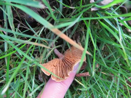 gras. De lamellen zijn kaneelbruin evenals de sporen en het steeltje is