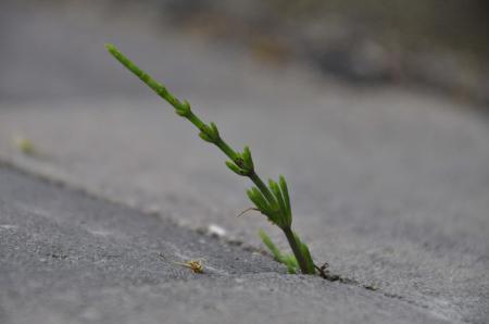 6 Onkruid, met dunne groene stengels, tussen straatstenen, en in tuinen (https://tinyurl.com/yxel56bo)