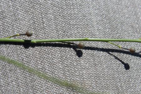 Let op de naaldvormige blaadjes, uiteraard in een krans. De steel is niet echt vierkant, wel wat hoekig.