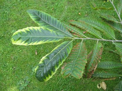 Mijn tamme kastanje krijgt goed blad maar als het volgroeid is krijgt het gele randen en wordt het vervolgens bruin. Het is een boompje van 3 jaar en staat op klei grond.