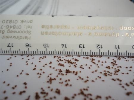 Even voor de goede orde. Dit is zaad van digitalis en met een liniaaltje erbij met centimeters en millimeters krijg je een ondruk van de grootte. Goed hè?