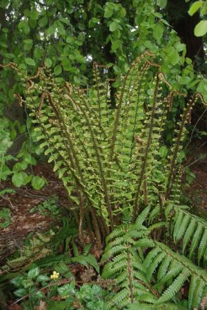 De foto's zijn genomen in het voorjaar, begin mei.De varen in kwestie is ruim een meter hoog en verliest het oude blad pas in het voorjaar wanneer het nieuwe blad aal uitgelopen is.