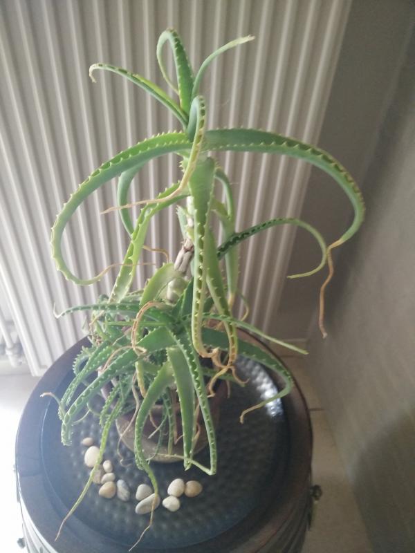 Dit is een Aloe soort, mogelijk Aloe arborescens. Verpotten kan heel goed, maar dan wel in een pot met afwateringsgaten. Voeding zal niet helpen, maar verse potgrond bevat al voeding.