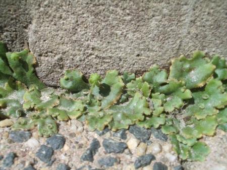 Waarschijnlijk is het levermos het zeer fraaie Parapluutjesmos dat wel een vrij vochtige bodem nodig heeft. Het mos vormt vrouwelijke en mannelijke parapluutjes. De vrouwtjes met dicht scherm en de mannetjes met open scherm. Zelf zou ik nooit vergif in de tuin gebruiken. Mocht het terras met Parapluutjesmos nog bruikbaar zijn waarom zou u dan ook niet genieten van het levermos?