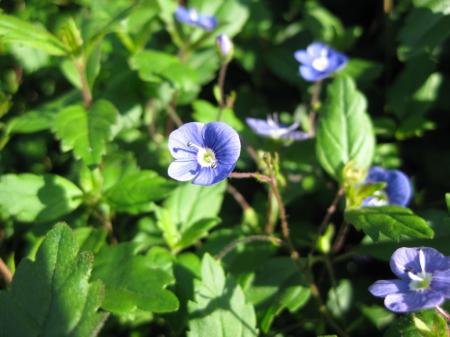 En ten tweede een vraag over dit blauwe bloemetje. Het is een vaste plant denk ik, groeit als een bodembedekker en ik dacht in eerste instantie aan 'loodkruid'. Maar nu ik verder op internet zoek begin ik daar toch over te twijfelen, omdat het bloemetje van loodkruid er toch niet echt op lijkt.