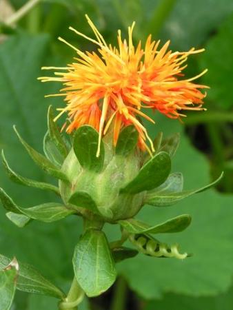 Carthamus tinctorius f. inermis, saffloer of verfdistel.