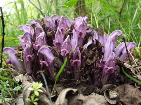 Het is paarse schubwortel, Lathraea clandestina. Een parasiet, die leeft op de wortels van andere planten.