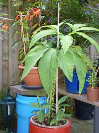 HEB je evt.nog de juiste naam voor deze plant is een zomerbol gehad van een kennis maar wist de naam niet komt in t voorjaar een mooie bloem in sterft dan af dus ik dacht laat maar staan en plots kwam er dit voor de dag de jongen scheuten die erbij staan zijn van een MUSA TROPICANA zet ik zomers gewoon buiten in de winter naar binnen