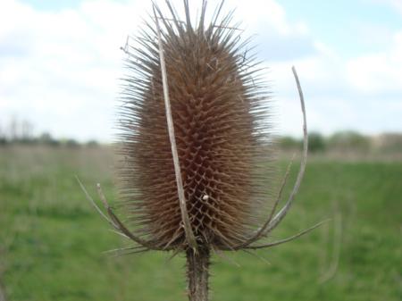 Het is wel een dooie kaardebol. Een kaardebol is tweejarig. Het eerste jaar groeit er een stekelig rozet en het tweede jaar gaat hij bloeien en sterft af