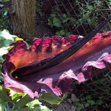 Ik dacht dat het een andere onwelriekende plant was (dracunculus vulgaris), echter er is wat verschil in de tijd met de benaming. Ik vind de plant (en zeker de bloem) wel mooi en apart, ik zou hem aan de schaduwkant van mijn terras zetten als hij wat beter zou ruiken.
