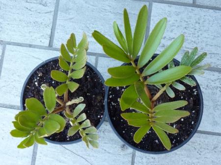 Ik geef een paar foto's van mijn planten. Deze winter hebben ze een massale aanval van wolluis gehad, waardoor ik genoodzaakt was alle bladeren af te knippen; één krijgt 5 nieuwe bladeren, en de andere 3. Ze staan buiten en hebben schaduw tussen +/- 12.00 en 16.00h.