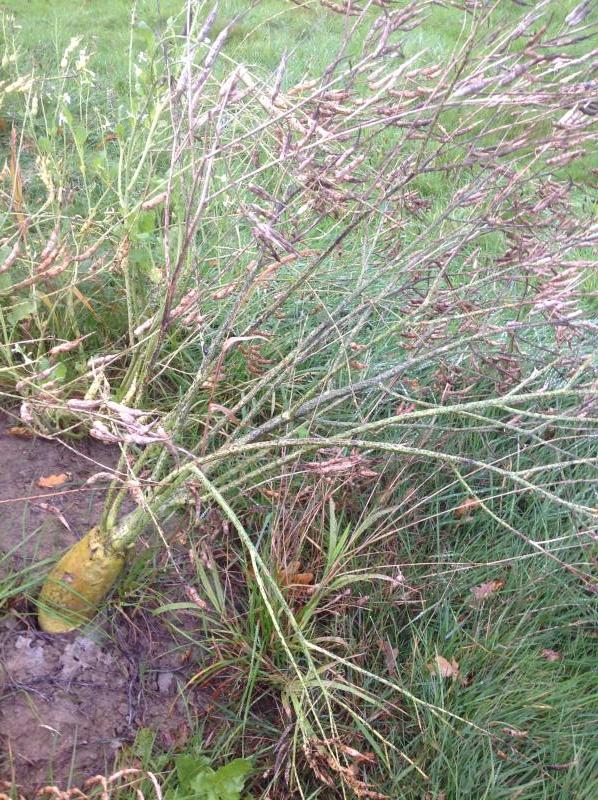 er zit een heel dikke wortel aan en de plant heeft zaden gevormd in peulen