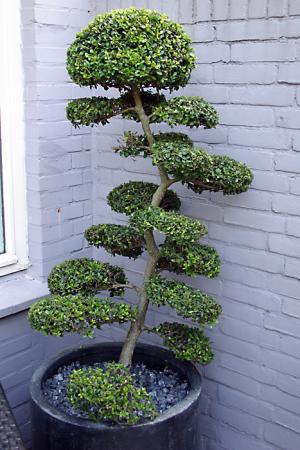 Hoogstwaarschijnlijk Ilexinfo-icon crenata, Japanse hulst. Geef hem een grotere pot met goede potgrond en wat extra mest.