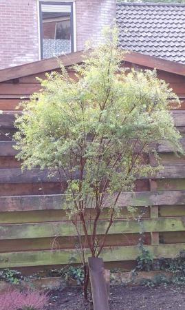 snoeien/afzagen, daar hij erg hoog wordt en zonder de plank die we er even