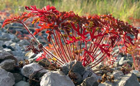 Op een hele droge, voedselarme grond kleuren ze inderdaad wel zo rood.