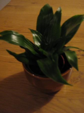 Kan iemand me zeggen wat voor plant het is? ik dacht eerst een Spathiphyllum, maar het blad is toch te stug hiervoor. Misschien een dracaena compacta? Het is een erg klein plantje en moet duidelijk nog flink groeien.