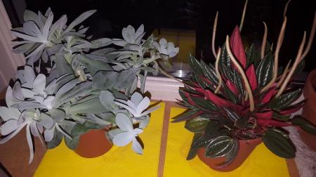 De rechtse plant is Peperomia caperata 'Rosso', de linkse is erg onduidelijk.
