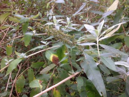 4. Buddleja, uitgebloeide bloeiwijze van 1
