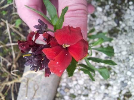 Goedemorgen iedereen. Ik ben totaal nieuw hier en kom uit Londerzeel (België). Graag had ik de exacte naam te weten gekomen van de struikbloem waar van u (hopelijk) de foto ziet. Het is een oud ras dat nogal eens gevonden werd op de binnenplaats van boerenhoven in de nabijheid van de mestverzamelplaats. De groei is weelderig en felgeurend. De struikbloem is winterhard en bereikt een hoogte van om en bij de 40 cm. De kleur benadert een soort roestrood. Hier wordt de bloem 'stoffelien' genoemd maar ik vind nergens ervan bevestiging (het is zeker geen anjerachtige). In de tuin van mijn moeder vond ik nog een restant , waarvan hierbij de foto. Wie helpt mij uit de nood. Dank bij voorbaat !