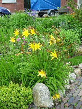 deze daglelie stond al in de tuin toen ik hier kwam wonen maar ik heb nog steets niet de complete naam kunnen vinden.Hij bloeit in Mei.