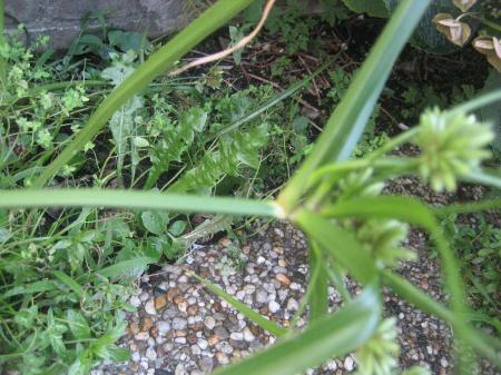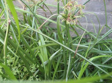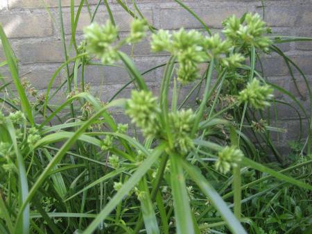 Cyperus esculentus, knolcyperus. Een hardnekkig woekerend onkruid. Na 3 jaar vindt je de plant niet meer leuk.