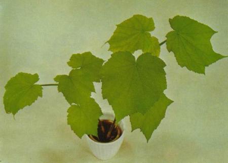 ik denk dat het een catalpa is. Die stengel met die vlekjes heeft een catalpa ook en het blad, hoewel wat aan de kleine kant lijkt ook erg veel op een catalpa. Maar waarom die in een kas staat?