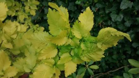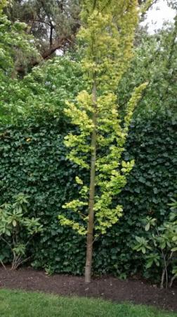 Ulmus 'Wredei' , goudiep Fagus sylvatica 'Atropunicea', rode beuk Carpinus betulus, haagbeuk Salvia nemerosa, siersalie Viburnum tinus