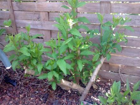 Kort geleden kocht ik mijn huidige woning, de tuin was compleet verwaarloosd en vele heesters zijn door de verkopende partij (woningbouw) grotendeels teruggesnoeid. Ik kan wel vermelden dat de betreffende struik aan de schaduwzijde van de tuin staat.
