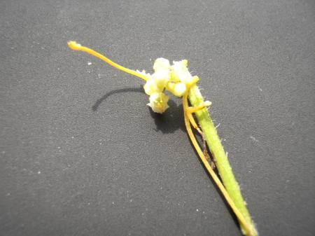 Dit zou wel eens Veldwarkruid (Cuscuta campestris) kunnen zijn die vooral op akkers op diverse plantensoorten kan parasiteren. Schijnt zeer zeldzaam te zijn.