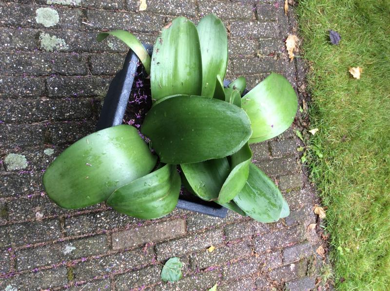Jammer dat de foto van deze Hamanthus albiflos, poederkwast, dwars staat! Doe er wat aan aub.!