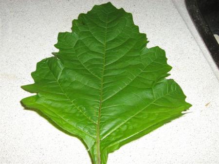 Hij is ongeveer 50 cm hoog (geen idee hoe hoog ie uiteindelijk wordt) en heeft groot blad (20 cm lang en ongeveer 16 cm breed op het breedste punt)