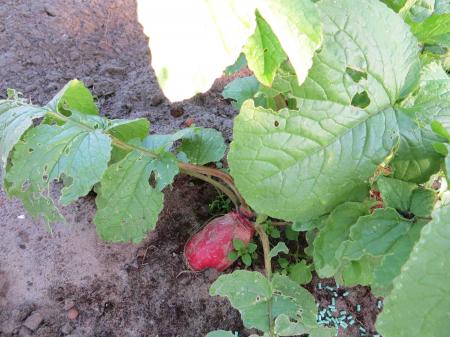 Bedankt voor het antwoord, maar ik twijfelde en heb er een uitgetrokken,het is inderdaad radijs ik wist niet dat er zo grote radijzen bestonden,nu al 15 centimeter, ik heb geproefd ze zijn wel heel pikant. Wel heel wat anders dan op het pakje vermelde tomaten.