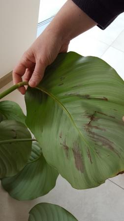 Nu staat hij in een koele ruimte. Iedere dag de bladeren benevelen met water.