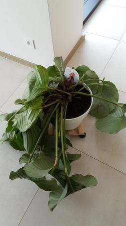 We hebben enkele maanden een Calathea. Hij staat niet in de volle zon. Sinds enkele dagen worden de blaren bruiner en bruiner en gaan ze volledig tegen de grond hangen. We hebben de plant als eens overgezet naar een nieuwe, grotere pot maar niets helpt.
