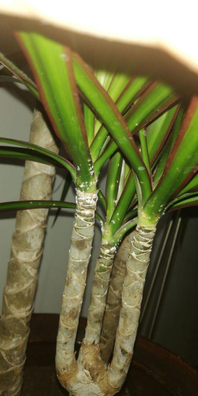 Help! Er zitten allemaal beestjes op mijn dracaena. Heb een foto bijgevoegd. Sommige bladeren vallen ook af en ik kan niet vinden wat het kan zijn. Wat is het en wat kan ik er aan doen?
