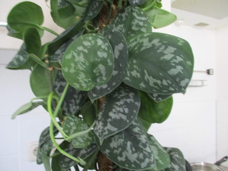 Wel familie, maar deze wordt tegenwoordig Epipremnum genoemd. Dit is Epipremnum aureum 'Marble Queen'.