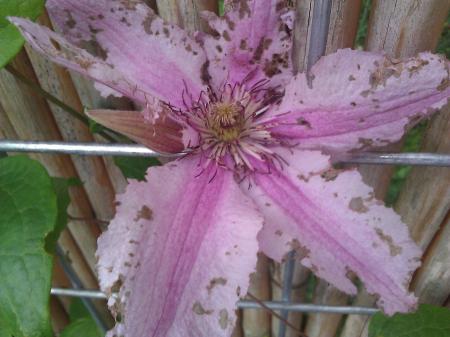 Is toch vreterij van de oorwurm. Dit nuttige insect staat erom bekend dat ze zich de bloemen van onder andere Clematis