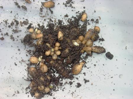 Ik ben er niet zeker van dat die stengels met dit knolletje te maken hebben. Wat ik wel zeker weet is dat die stengels bij bossen aanwezig zijn tot ongeveer 40 a 50 cm diep.