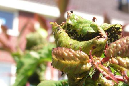 mijn prunus avium zit vol met deze beestjes.ze tasten de bladeren aan.wat voor beestjes zijn dit en wie weet hoe ik deze plaag het beste kan bestrjden?