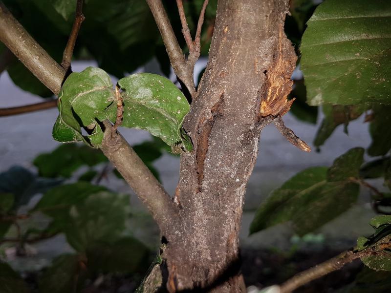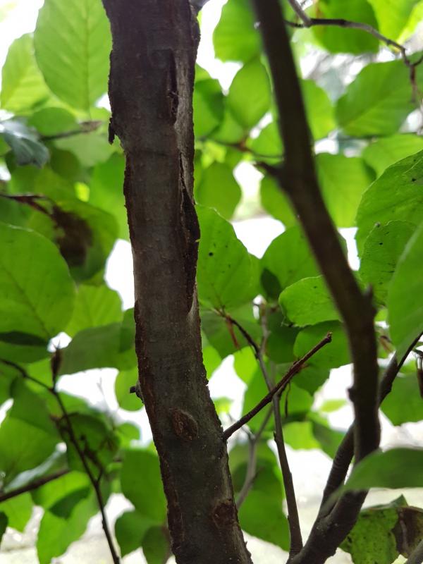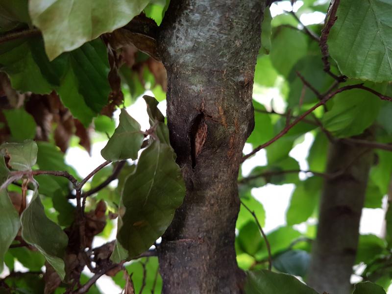 Hallo, wie kan me helpen met advies? Het lijkt alsof mijn beukenhaag dood gaat. Ik heb een aantal foto's gemaakt van de stammetjes. Wat is hier aan de hand en wat kan ik er aan doen? de bast is aangetast, er zitten scheuren in, bij sommige beukjes wordt dat deel zwart. Ook zie ik luizen en mieren. Het beukje van foto 2 vertoont sinds vandaag dat zijn bladeren verwelken, deze staat wel op een zonnige plaats. De beukhaag staat er nu een paar jaar en we voeden deze regelmatig met de speciale beukenmest, daarnaast compost en regelmatig water, want we wonen in een droge regio op zandgrond. De beukjes staan naast een grote eik en andere struiken en krijgen hierdoor niet veel licht. de haag is nu ongeveer 1,75m hoog. Ik dacht goed voor mn haag te zorgen maar schrik hier nogal van, wie kan me helpen en ziet wat er precies aan de hand is? alvast hartelijk dank!