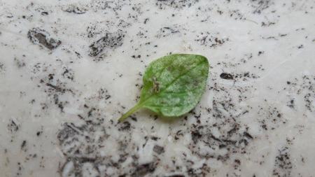 Op de bladeren van mijn oregano plant zitten witte vlekken en op sommigen zijn zwarte stippen te zien (mogelijk uitwerpselen?). Ook vond ik een klein beestje onder een van de bladeren, deze staat op de foto met het losse blad.