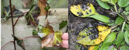 Nu begint mijn hedera bruine en zwarte vlekken te krijgen gevolgd door soms gaten en tenslote uitval.