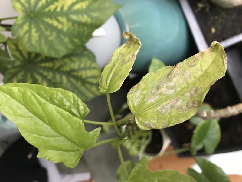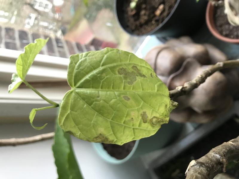 mijn papayaplant vertoont sinds een aantal weken verschrompelde bladen/bruine vlekken op de oudste bladen. De bladeren blijven erg klein en verschrompelen dus voordat ze volgroeid raken.